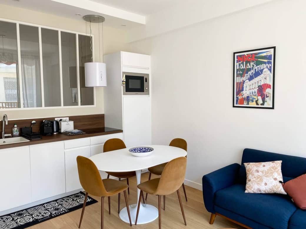 Meyerbeer is a recently renovated two bedroom apartment at two steps from the Promenade des Anglais and the beach, at the very center of Nice. There are two bedrooms and a living space with a sofa and an open kitchen, with access to the balcony. The location is exceptional, area has it all: restaurants, shops - you can basically visit the whole town walking. The building has a lift, the apartment has air conditioning.