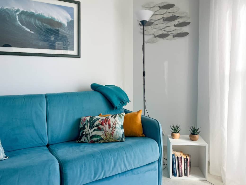 The airy and sunny living/dining room area has a double sofa bed and open plan kitchen complete with numerous electrical appliances. The bathrooms have been totally renovated, as has the spacious bedroom with a full double bed ( 160cm) and ample closet space. Double access to the private terrace via the bedroom and living room.
